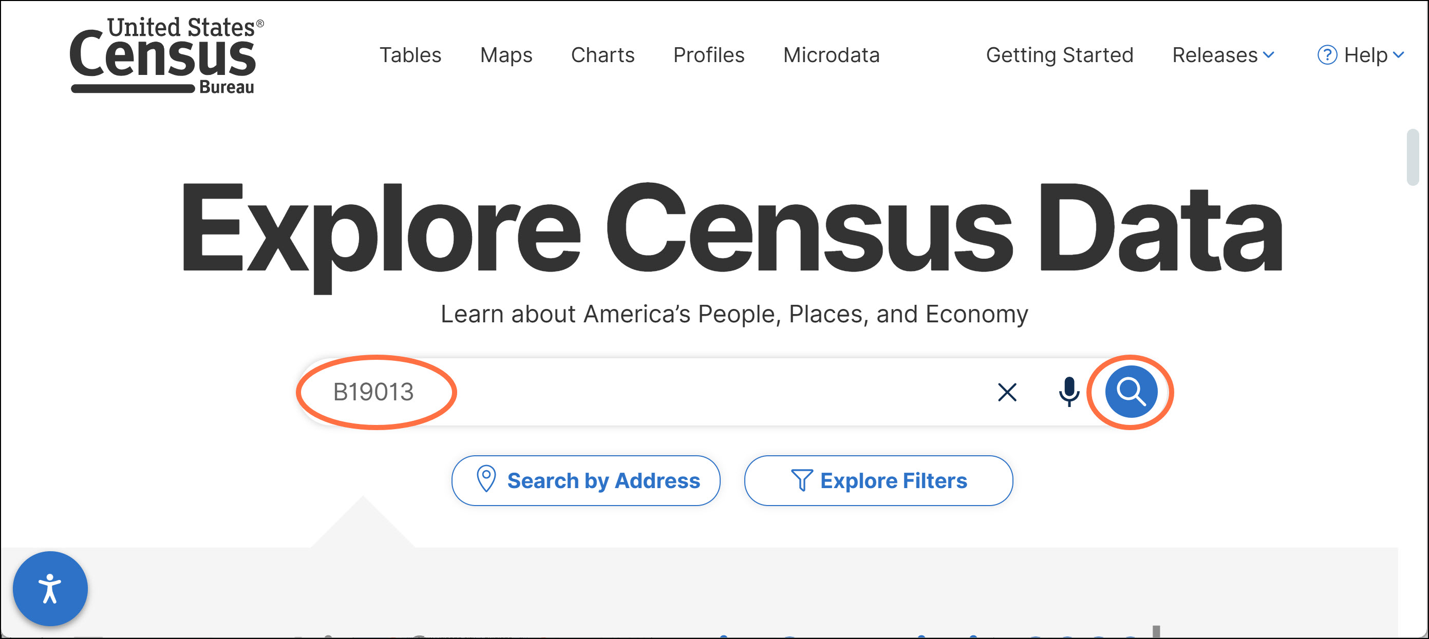 Then when you are ready to search for a new table ID, you can click into the single search bar at the top of the page to type a new ID (example: B19001), and press enter. Be sure to click the magnifying glass if you want your other filters to remain in the updated search. See the FAQ: How Can I Keep My Geographies When Searching for a New Table for more details.