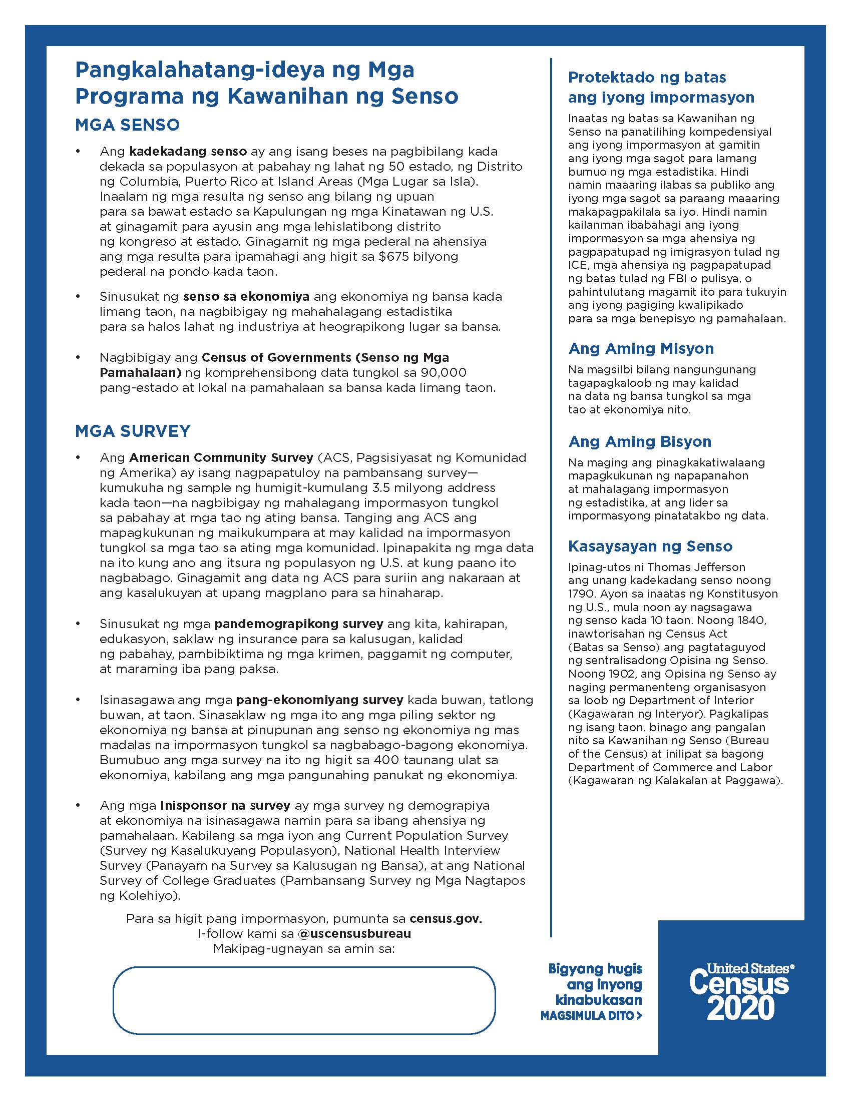 Ang 2020 Senso sa isang Sulyap (2020 At-A-Glance) - Tagalog