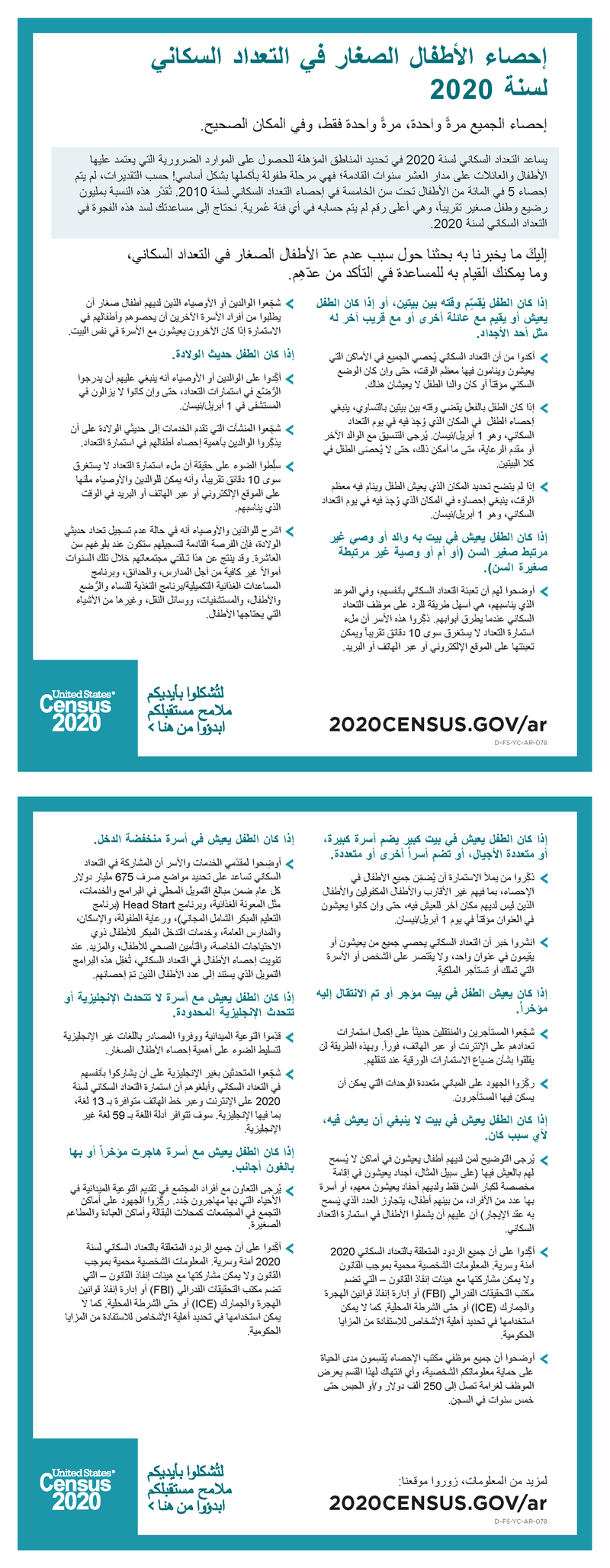 تعداد الأطفال الصغار في التعداد السكاني لسنة 2020