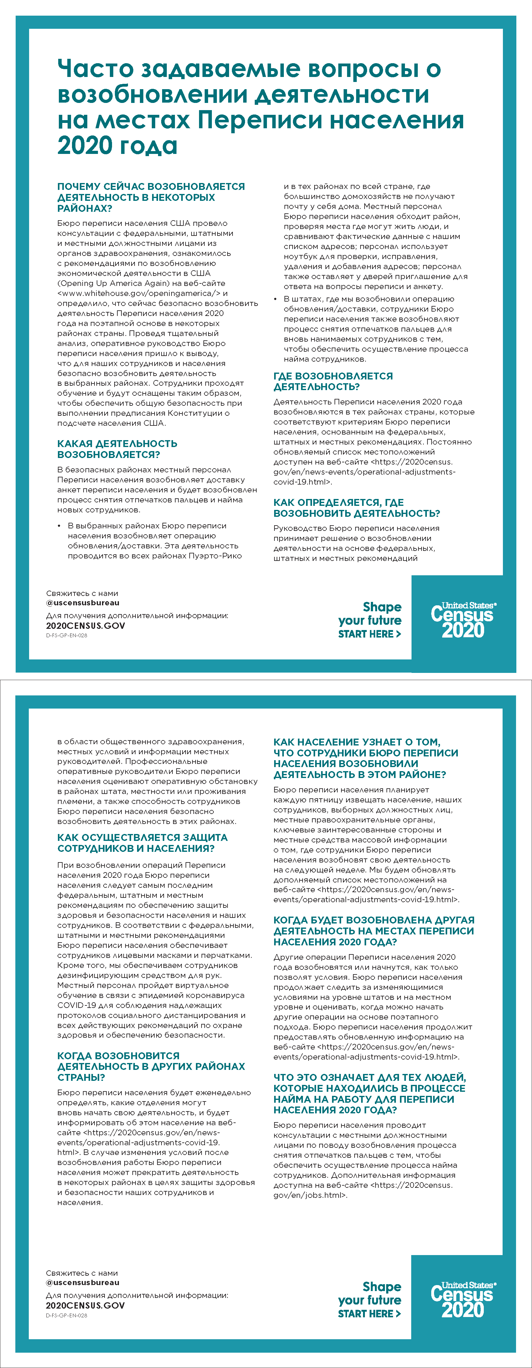 Часто задаваемые вопросы о возобновлении деятельности на местах Переписи населения 2020 года