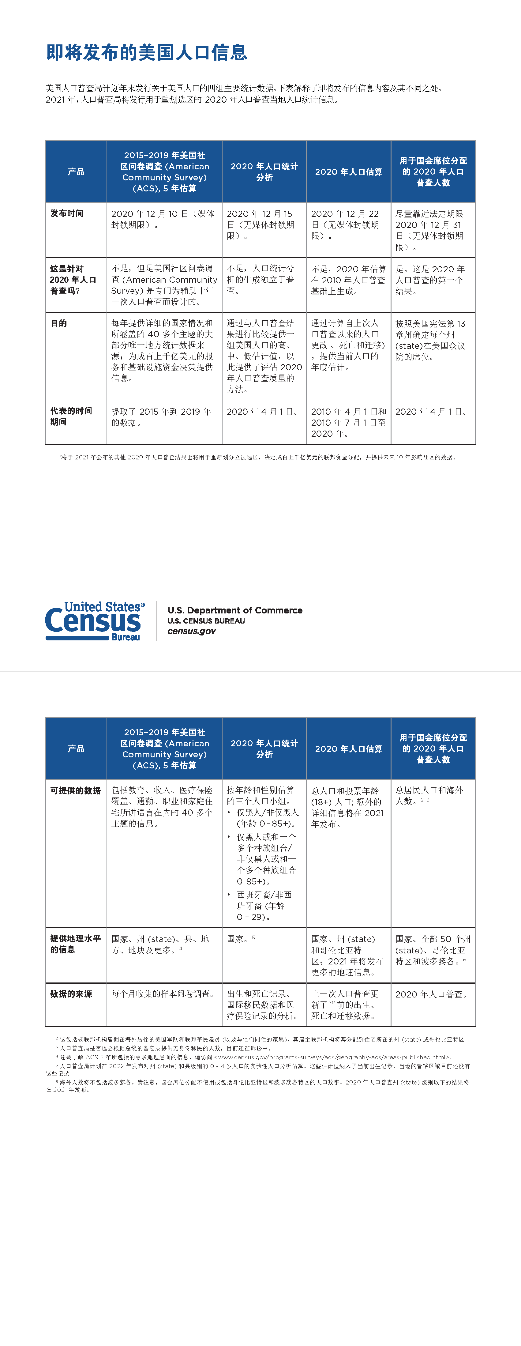 即将发行的美国人口信息