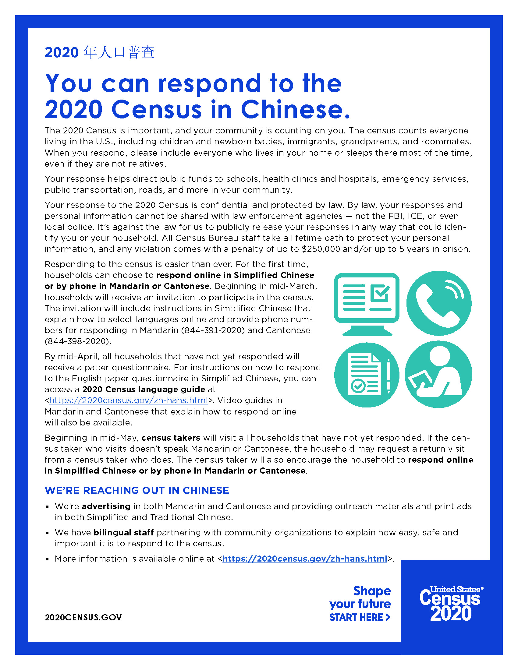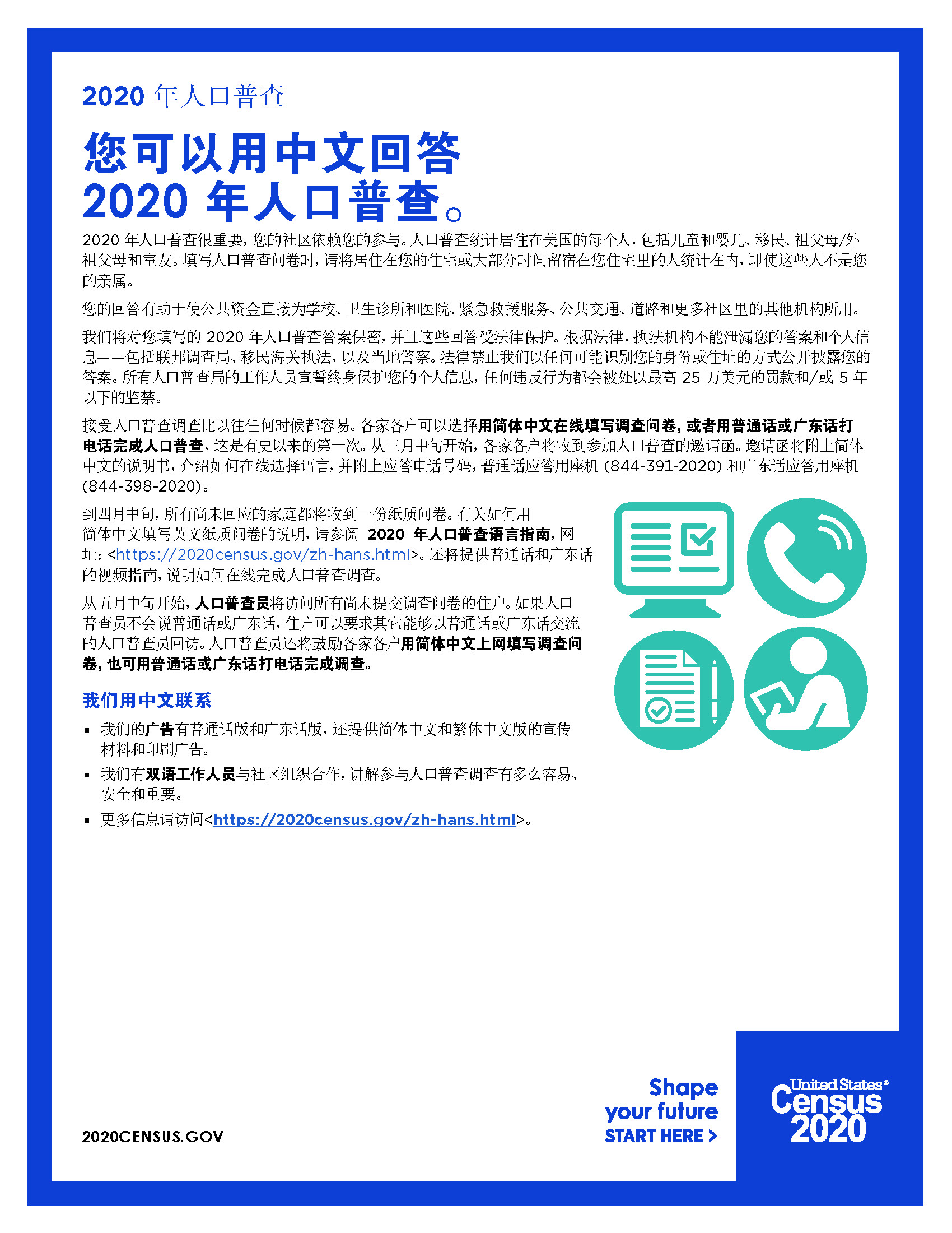 You can respond to the 2020 Census in Chinese / 您可以用中文回答 2020 年人口普查。