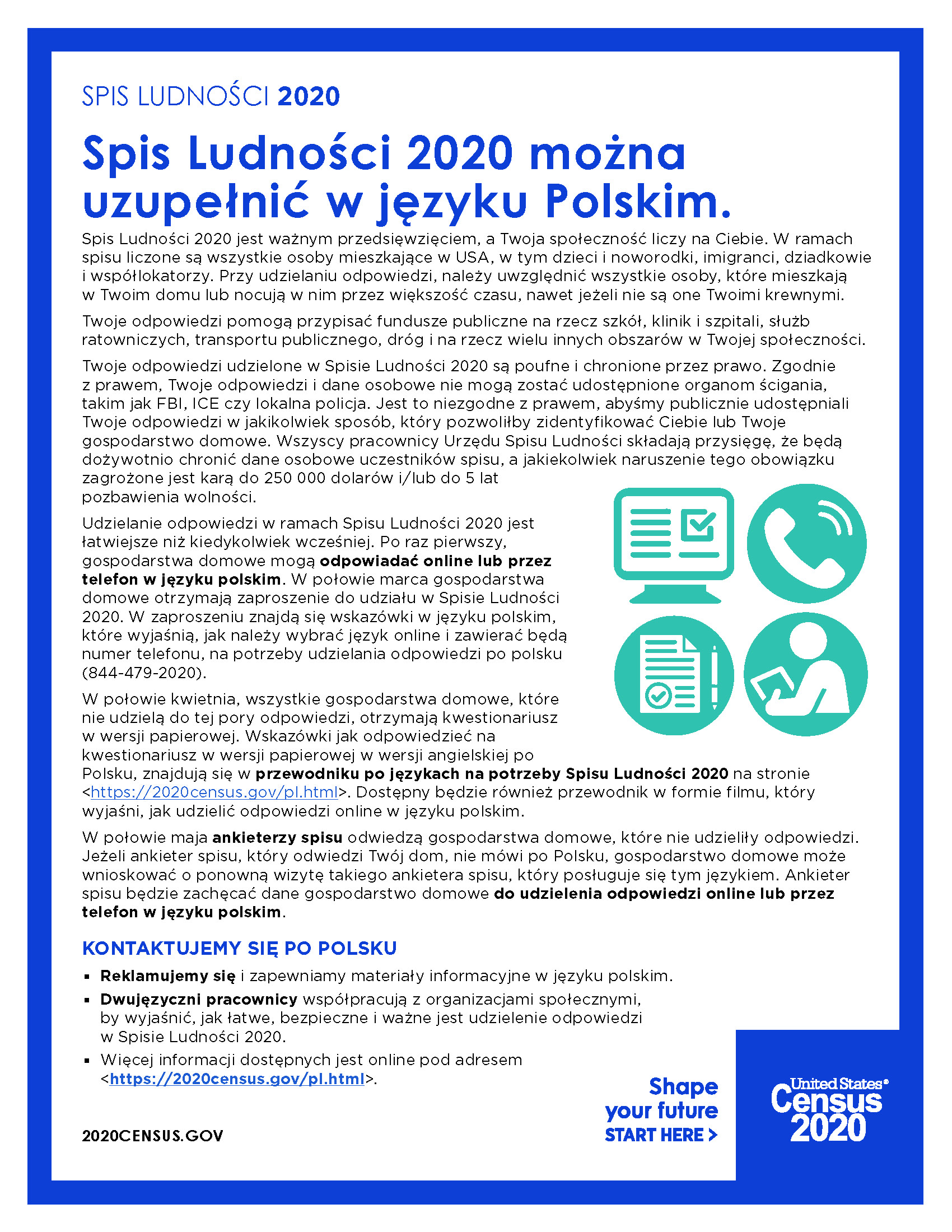 You can respond to the 2020 Census in Polish / Spis Ludności 2020 można uzupełnić w języku Polskim.