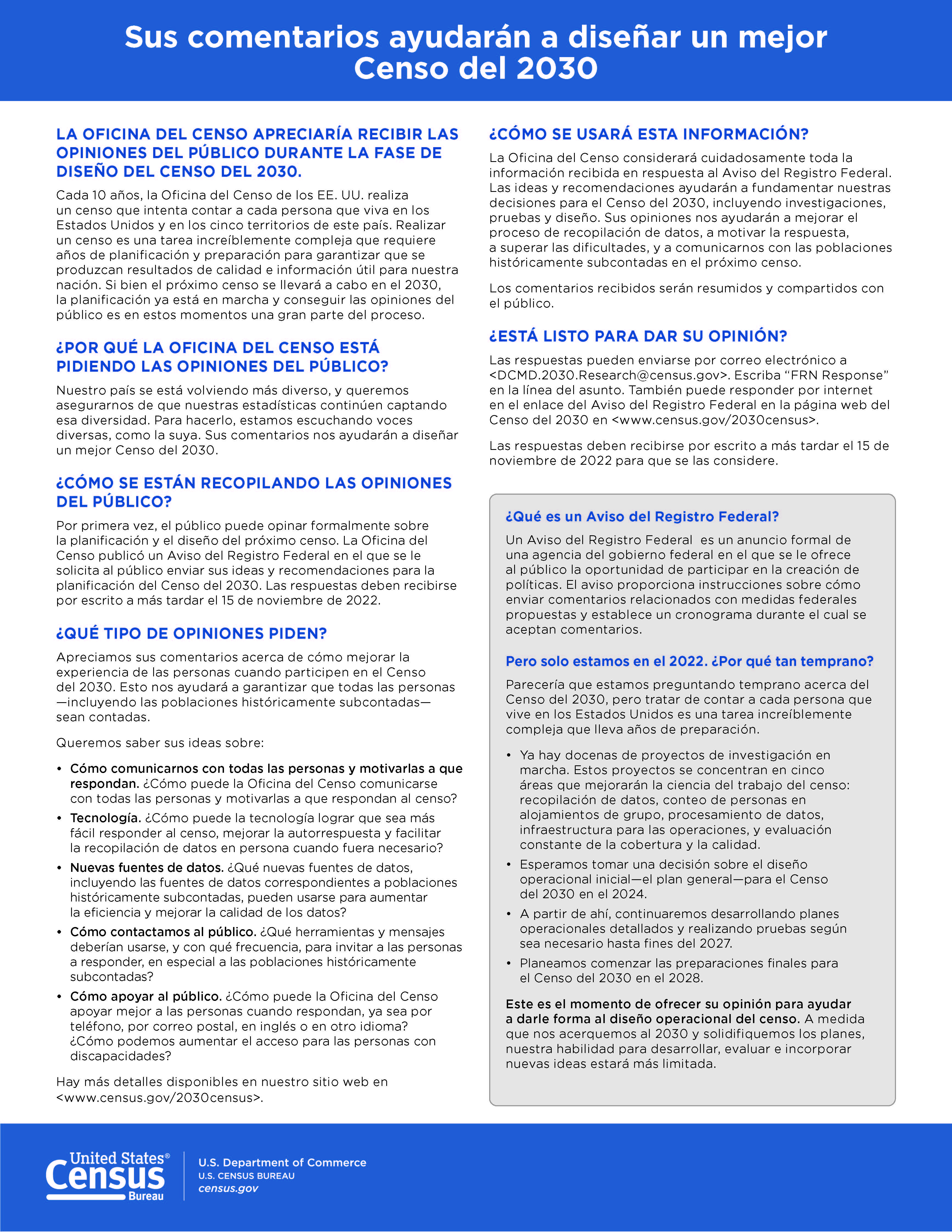 Sus comentarios ayudarán a diseñar un mejor Censo del 2030