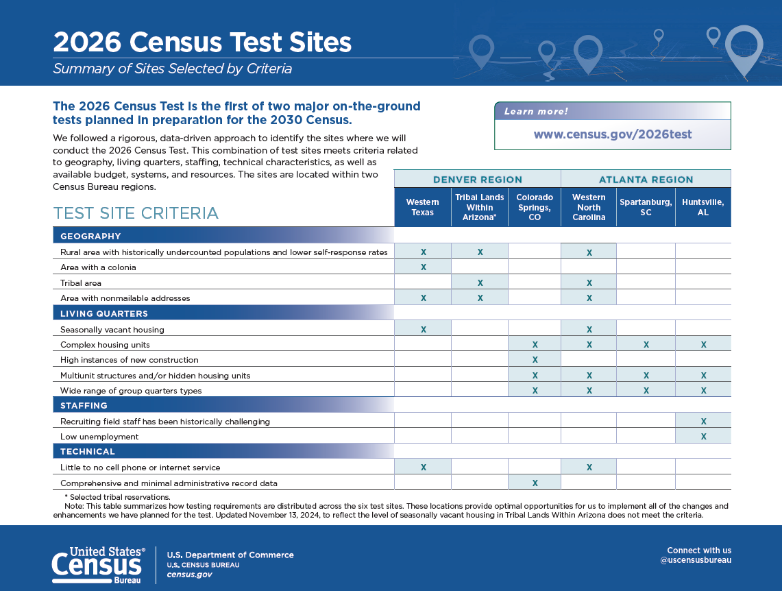 2026 Census Test Sites: Summary of Sites Selected by Criteria