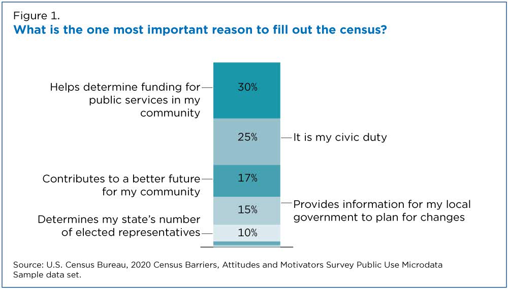 Thirty percent of respondents specifically said the most significant reason to reply to the census is the knowledge that census data are used to guide public funding decisions. Another 17% said it’s that it benefits their community’s future, while 15% said the most important reason is that it provides information for local governments.