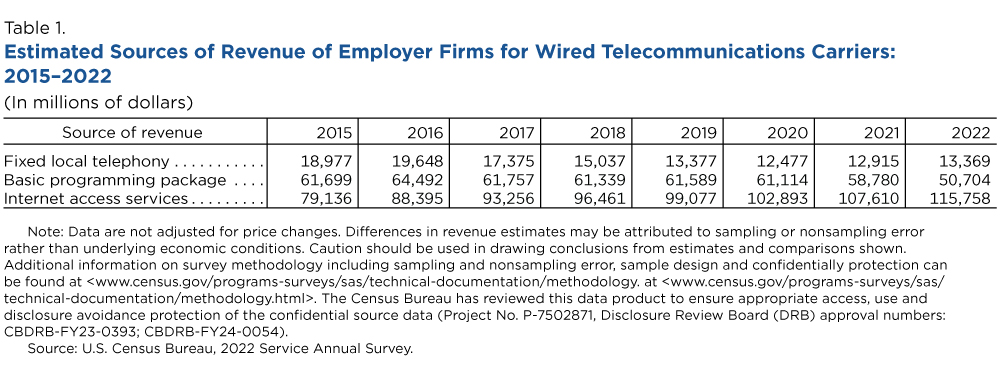 Wired Telecommunications Carriers experienced a 29.6% drop in employer revenue generated through fixed local telephony services from 2015 to 2022, according to the SAS.