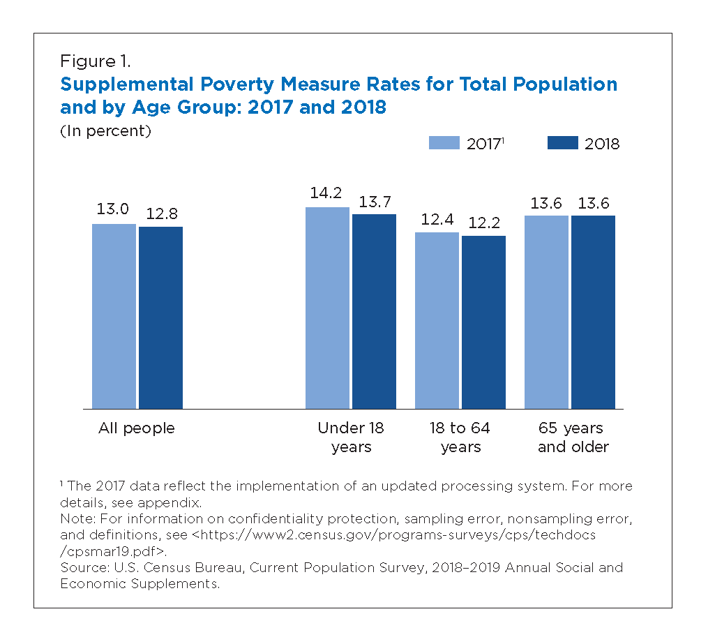 Since the publication of the first official U.S. poverty estimates, researchers and policymakers have continued to discuss the best approach to measure income and poverty in the United States. Beginning in 2011, the Census Bureau began publishing the Supplemental Poverty Measure (SPM), which extends the official poverty measure by taking account of many of the government programs designed to assist low-income families and individuals that are not included in the official poverty measure. This is the ninth report describing the SPM, released by the U.S. Census Bureau, with support from the Bureau of Labor Statistics (BLS). This report presents updated estimates of the prevalence of poverty in the United States using the official measure and the SPM based on information collected in 2019 and earlier Current Population Survey Annual Social and Economic Supplements (CPS ASEC).