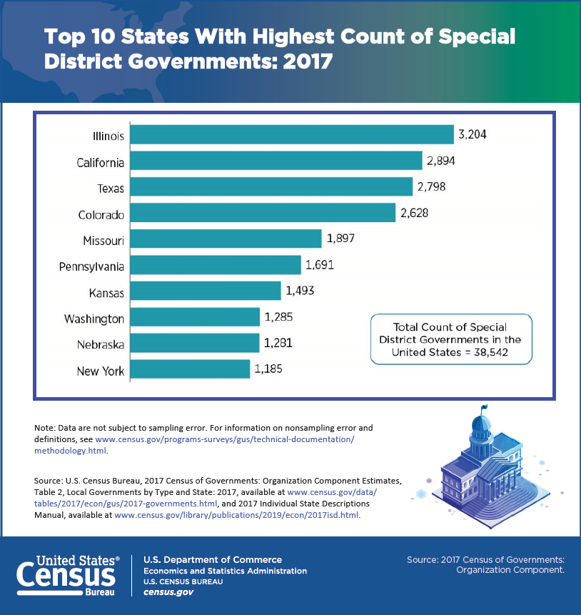 Top 10 States With Highest Count of Special District Governments: 2017