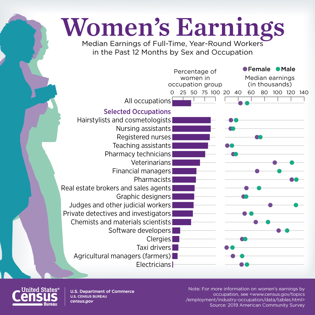 For more information on Women's Earnings by Occupation, see <www.census.gov/topics/employment/industry-occupation/data/tables.html>.