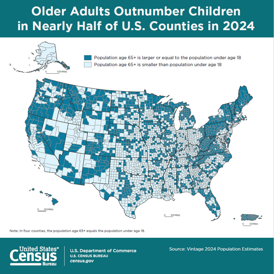 Older Adults Outnumber Children in Nearly Half of U.S. Counties in 2024