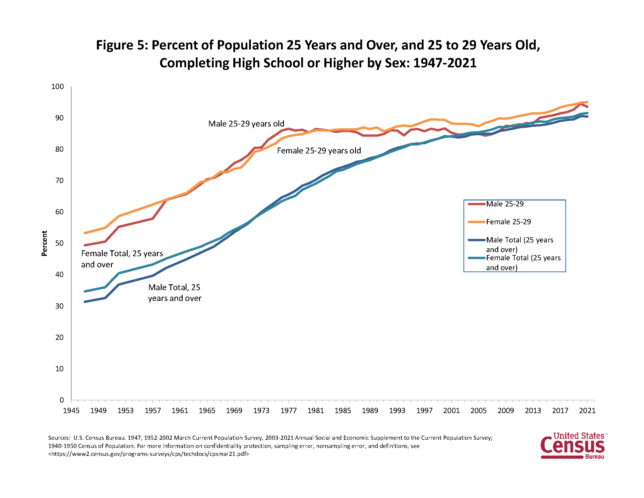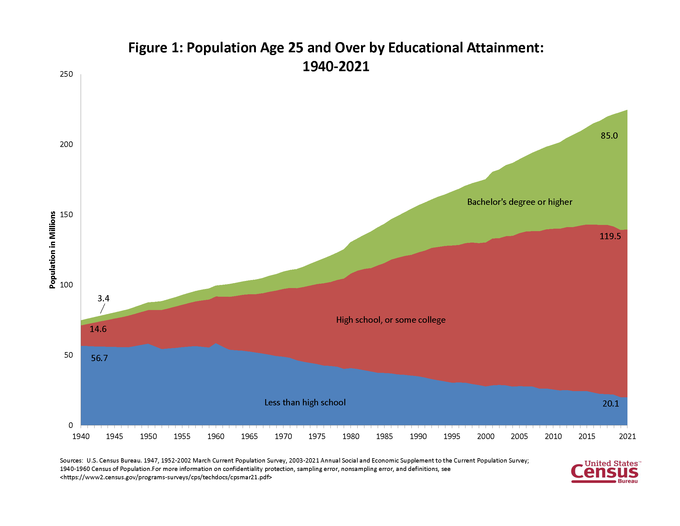 Table A-1. Years of School Completed by People 25 Years and Over, by Age and Sex: Selected Years 1940 to 2022