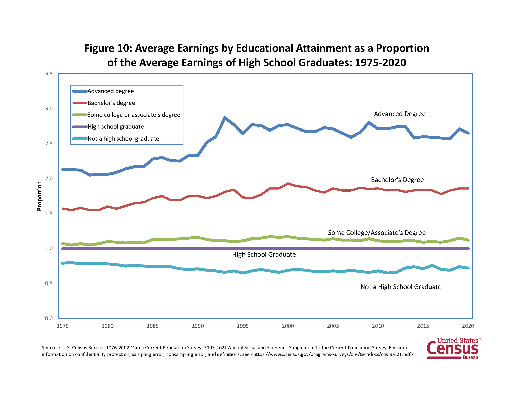Table A-3. Mean Earnings of Workers 18 Years and Over, by Educational Attainment, Race, Hispanic Origin, and Sex: 1975 to 2020