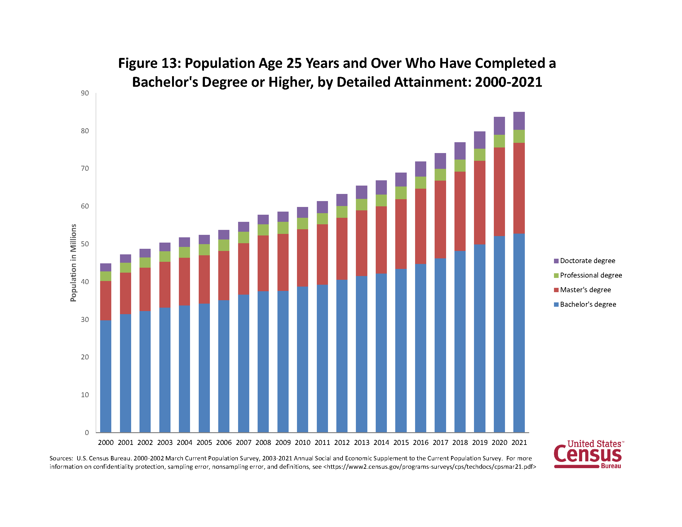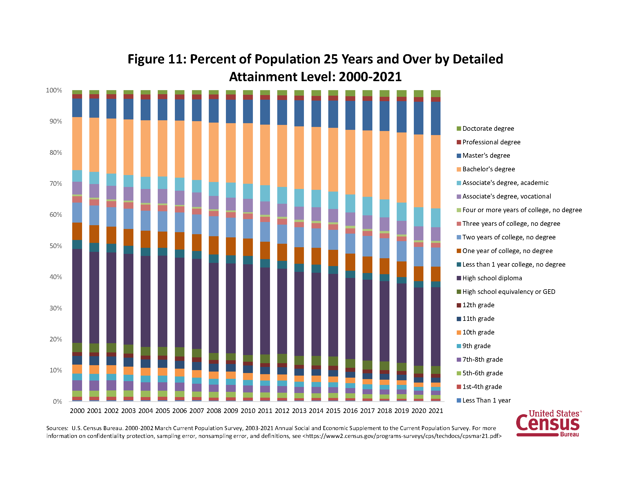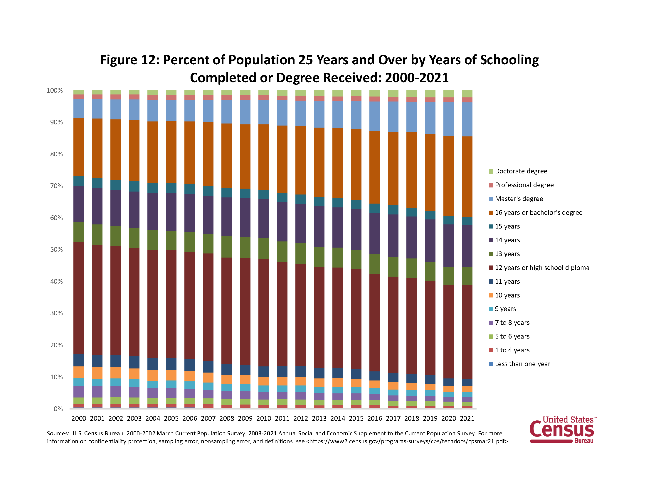 Table A-4. Detailed Years of School Completed by People 25 Years and Over: 2000 to 2021