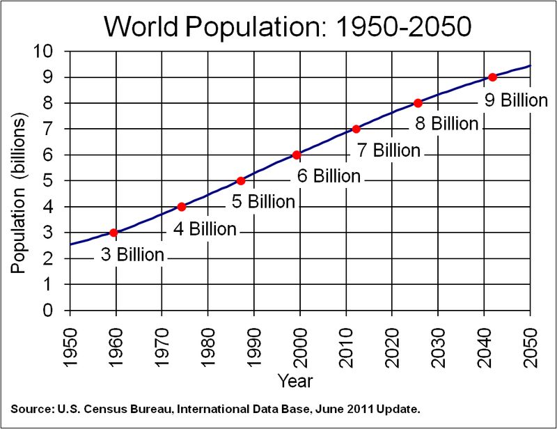 The world’s population will shortly reach 7 billion. The United Nations estimates the world will reach this milestone on October 31, 2011. The U.S. Census Bureau estimates the world population will pass 7 billion on March 12, 2012 (see graph; for a link to Census Bureau’s estimates of today’s population, as well as annual midyear estimates from 1950 to 2050, see //www.census.gov/population/international/data/idb/worldpopinfo.php).